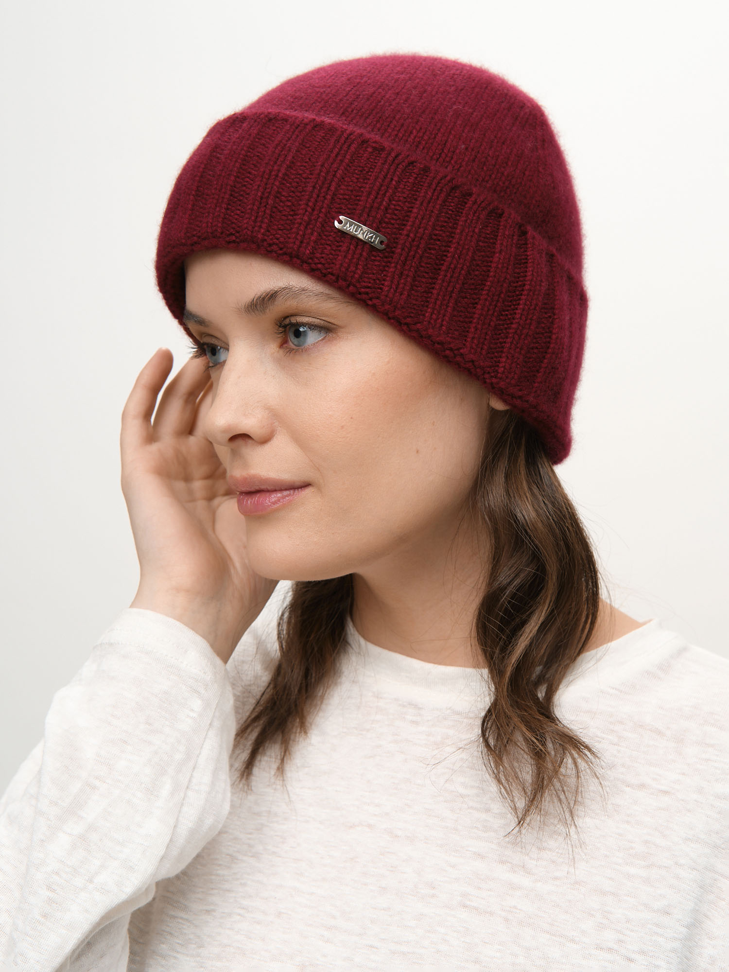 Шапка из кашемира 04247 бордовая