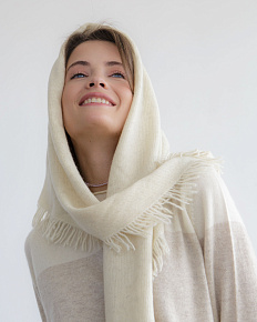 Косынка мягкая и тёплая. Смотрится эффектно! Вещь добротная. Но цвет в жизни не такой белоснежный как на картинке , а более грязнее чтоли.