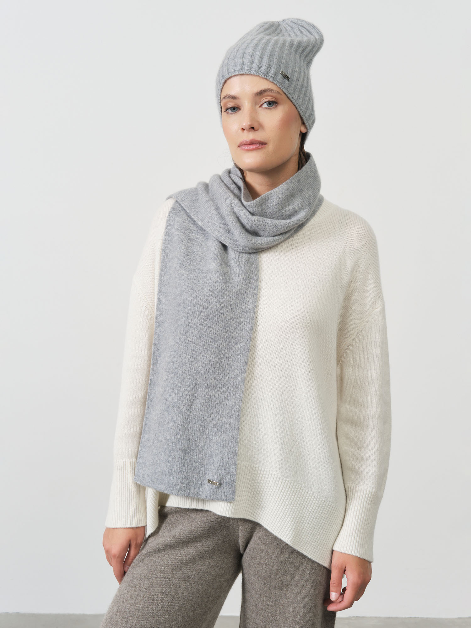 Шарф из кашемира 03034 серо-голубой