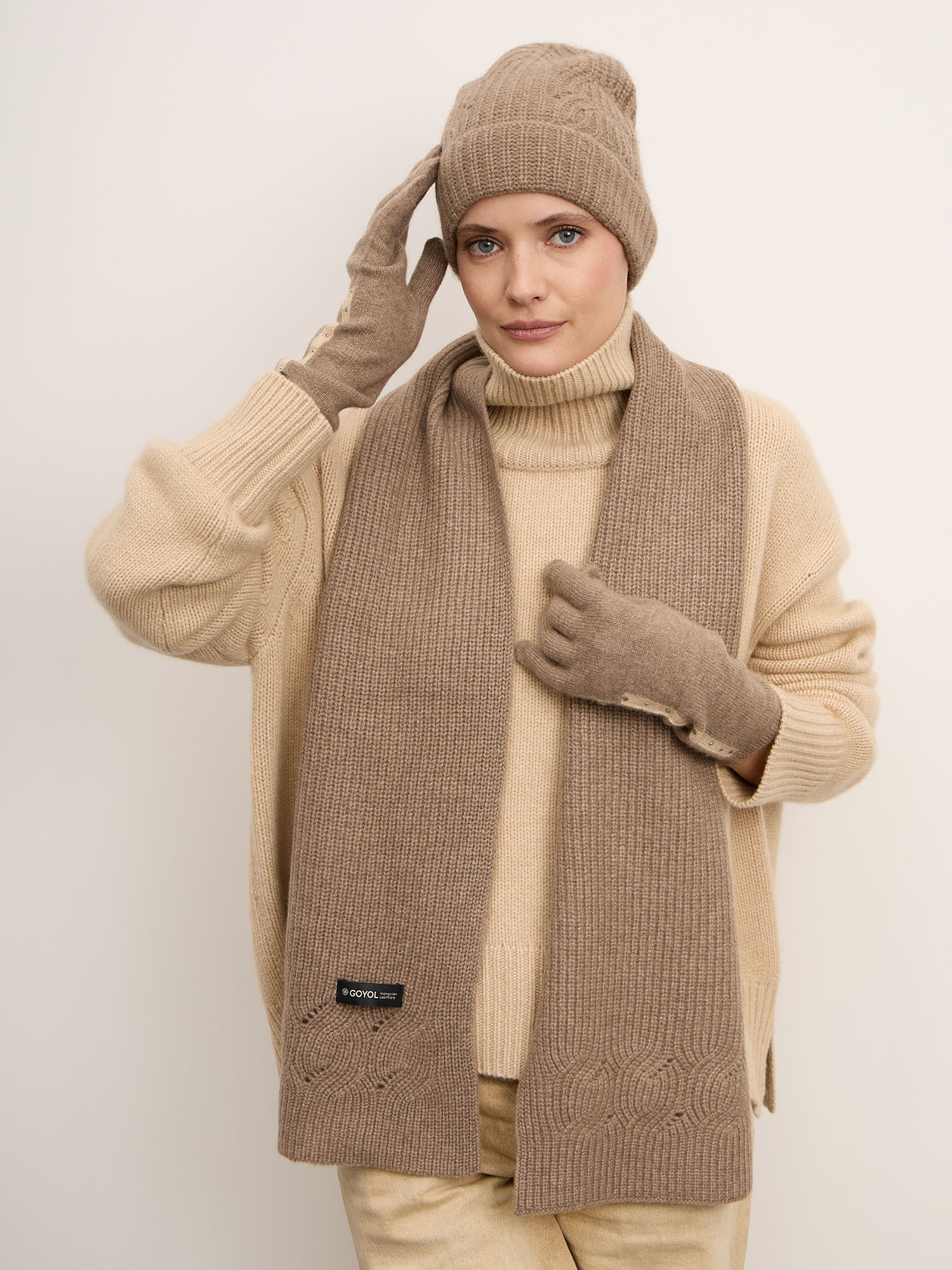 100% натуральный кашемир премиального качества — лёгкий, тёплый и невероятно мягкий. Волокно обладает высокой теплоизоляцией, воздухопроницаемостью и деликатной текстурой, обеспечивая максимальный комфорт при носке.