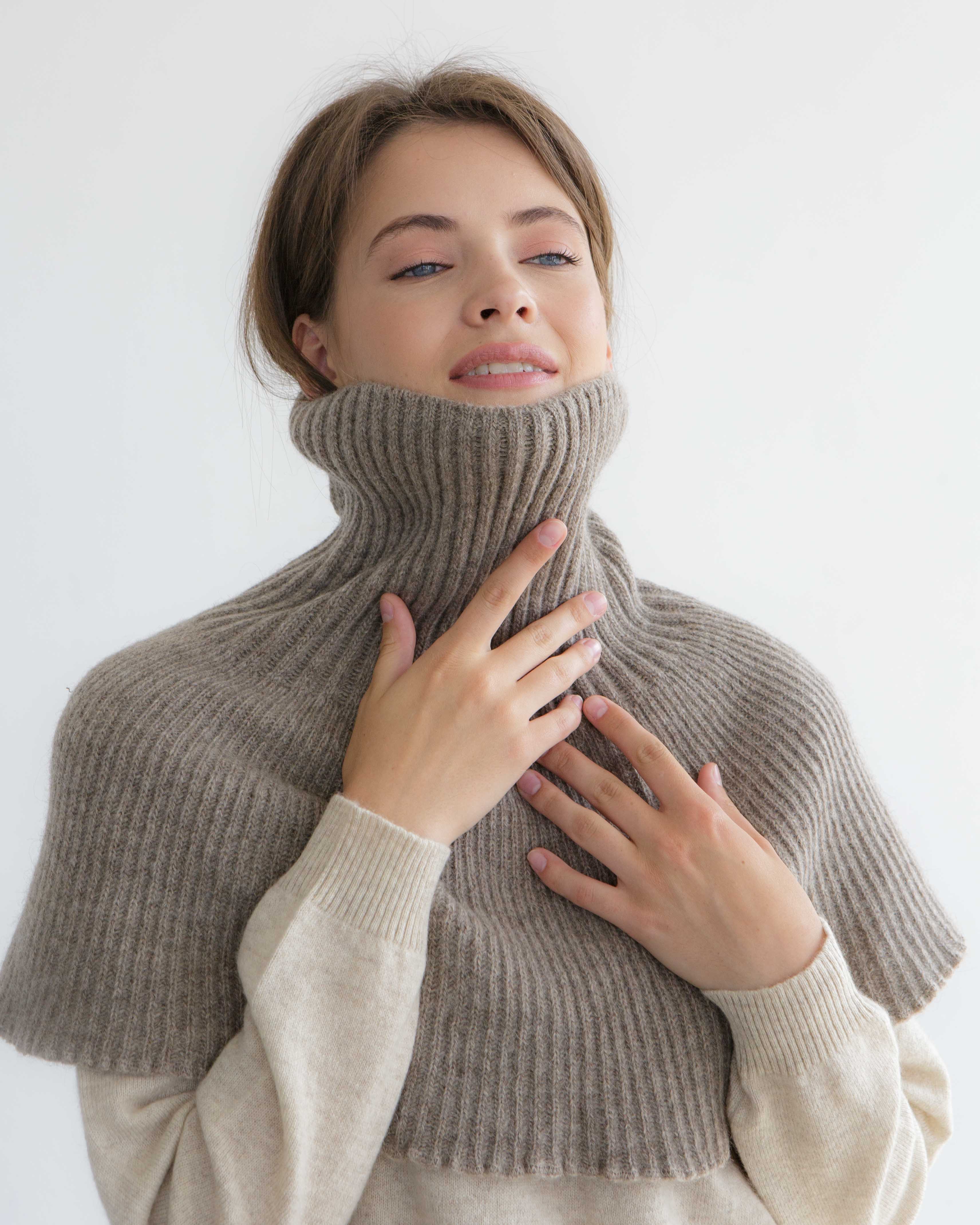 Лёгкий и тёплый аксессуар, который можно носить поверх свитера, пальто или куртки. Манишка обеспечивает дополнительное тепло в зоне шеи и плеч, оставаясь удобной альтернативой шарфу.