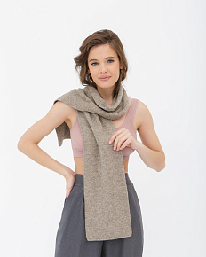 Модель выполнена в классической прямоугольной форме с лаконичной фактурной вязкой. Минималистичный дизайн подчёркивает натуральную красоту материала и делает аксессуар универсальным для различных образов.