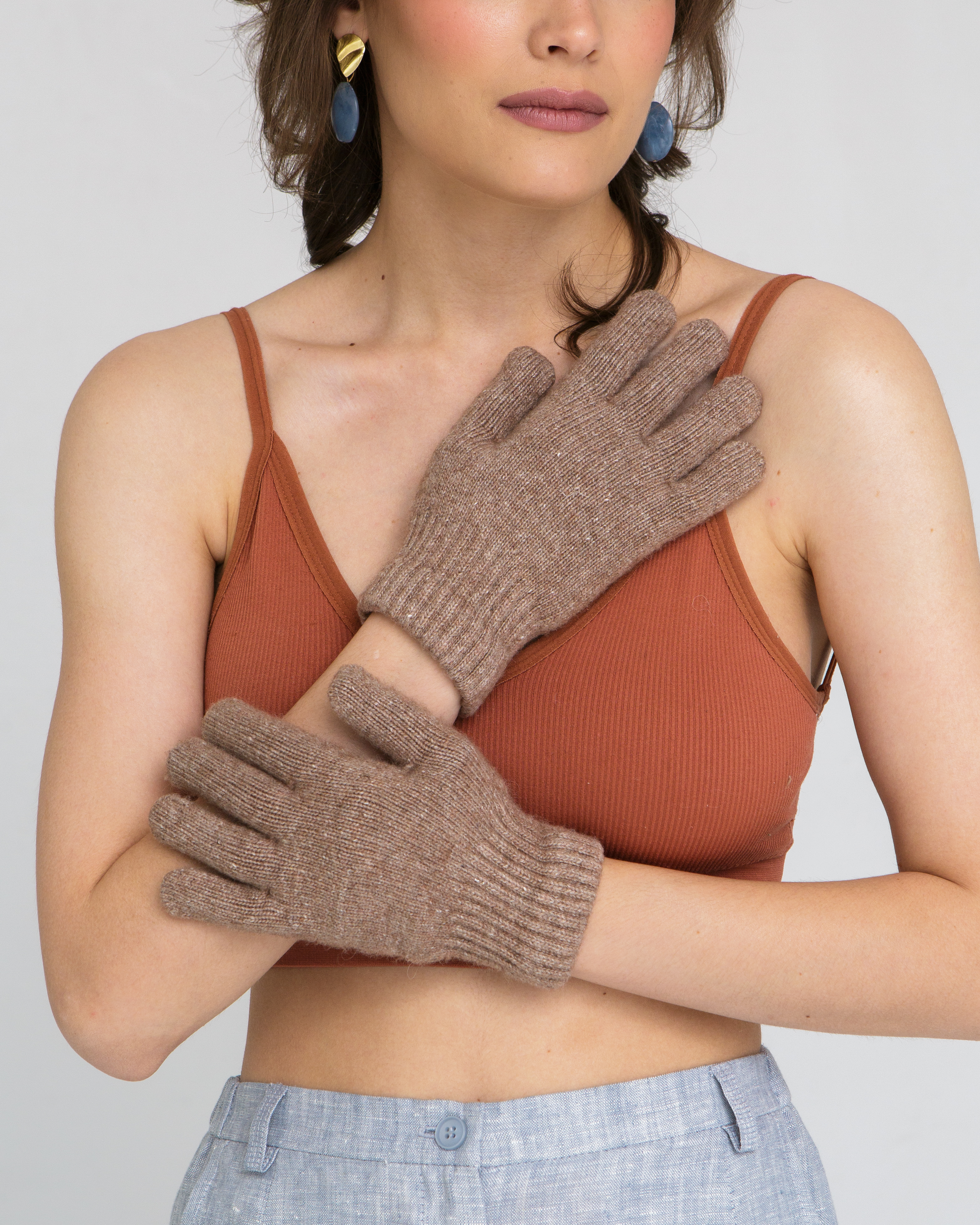 Теплые перчатки из монгольской шерсти коричневые
