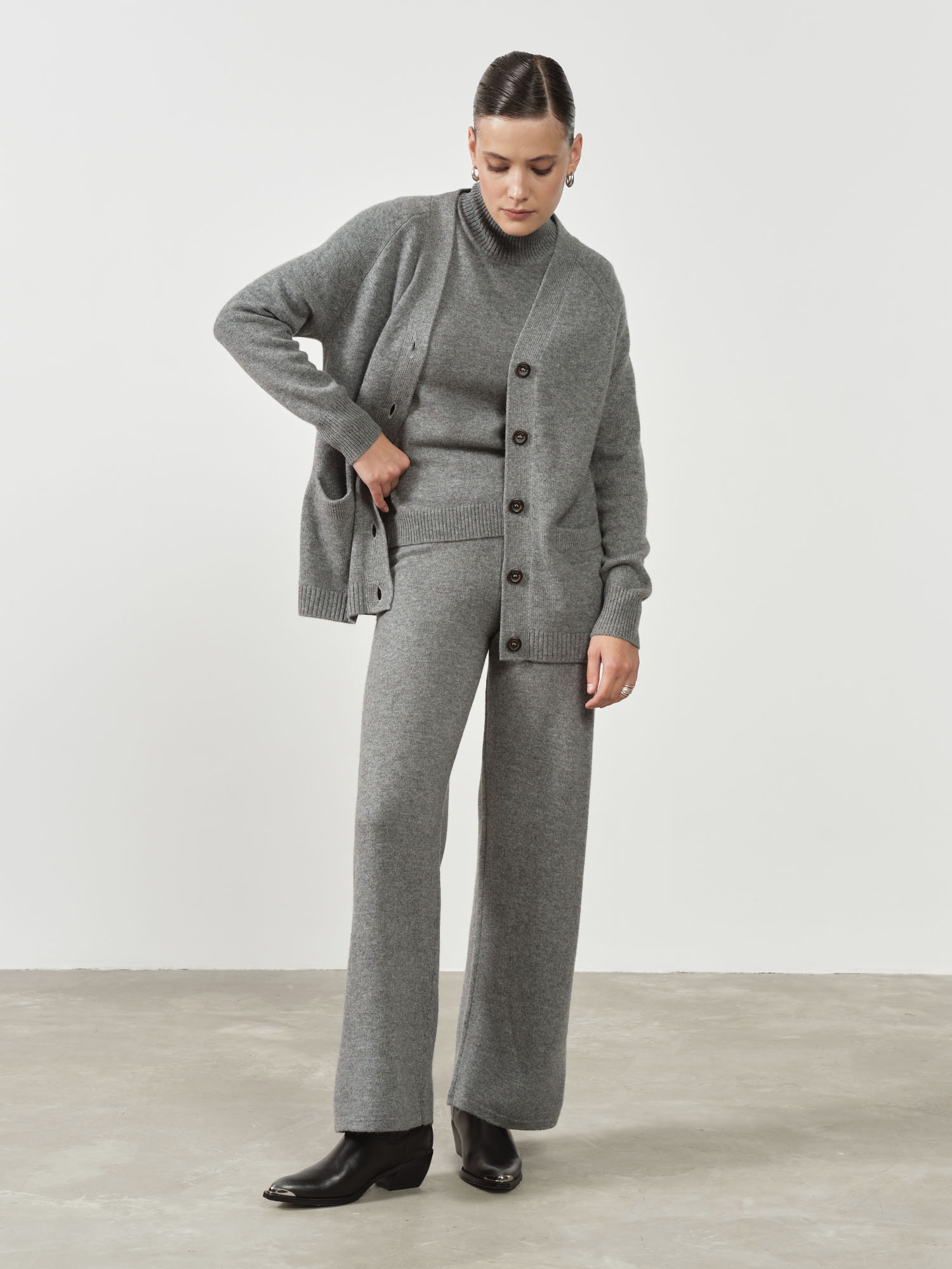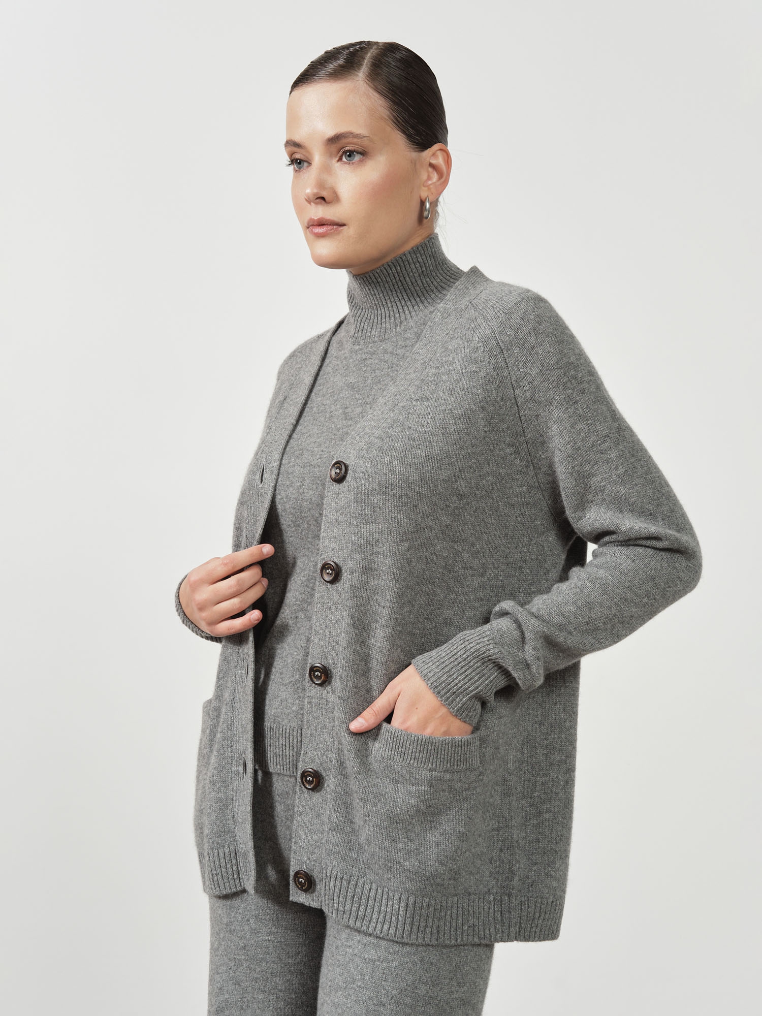 Женский кардиган из кашемира — элегантная и универсальная модель, которая идеально подходит для базового гардероба. Свободный силуэт и мягкая текстура создают ощущение уюта и комфорта, а лаконичный дизайн позволяет легко интегрировать изделие в повседневные и деловые образы.