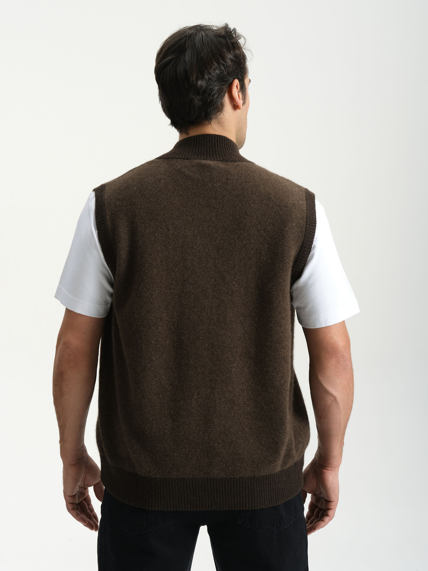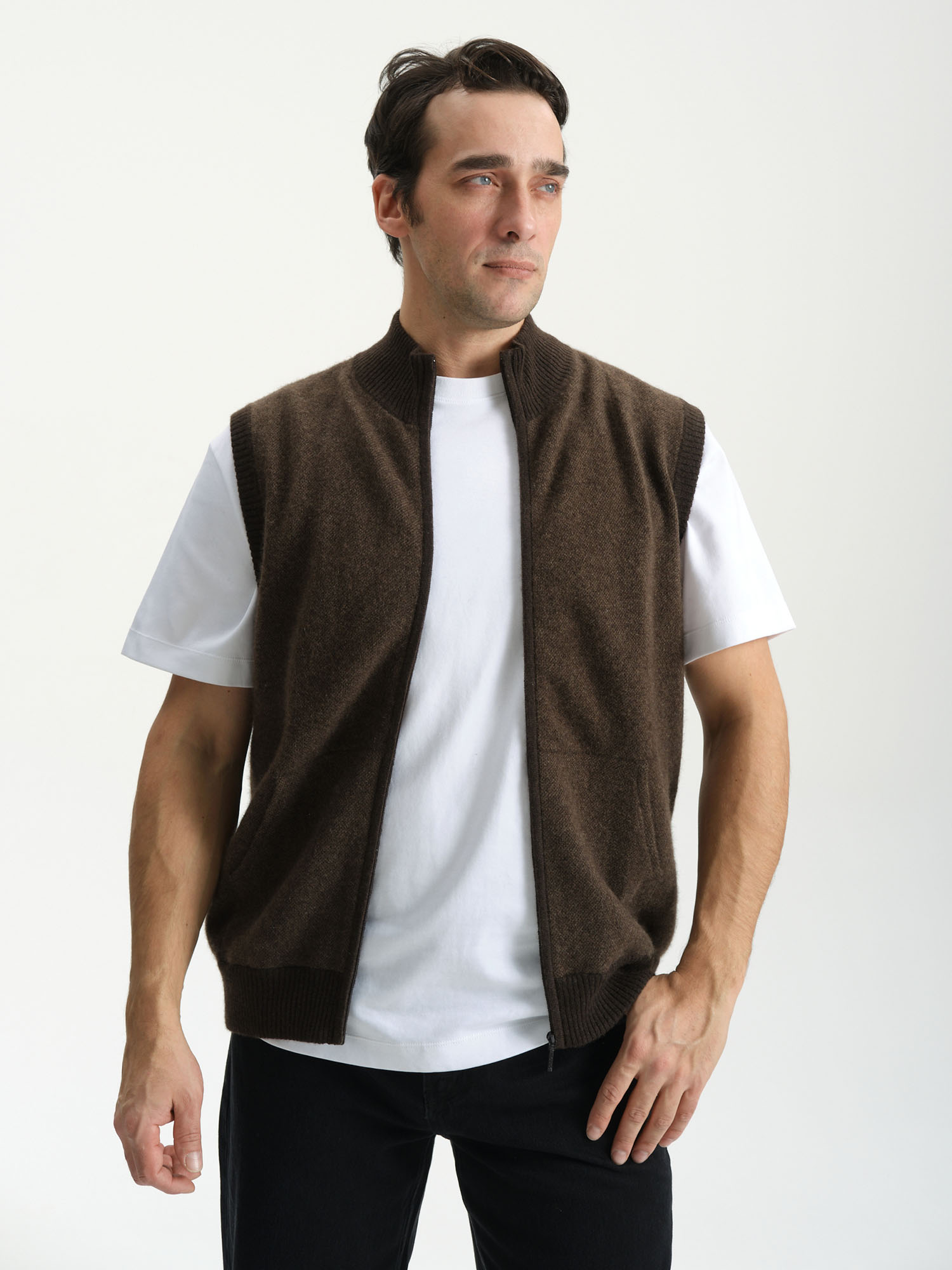 Премиальный мужской жилет из 100% натурального пуха яка с застежкой на молнии в классическом коричневом цвете – идеальное решение для ценителей натуральных материалов и комфорта. Этот стильный предмет гардероба станет незаменимым для тех, кто предпочитает сочетать практичность, тепло и элегантность.