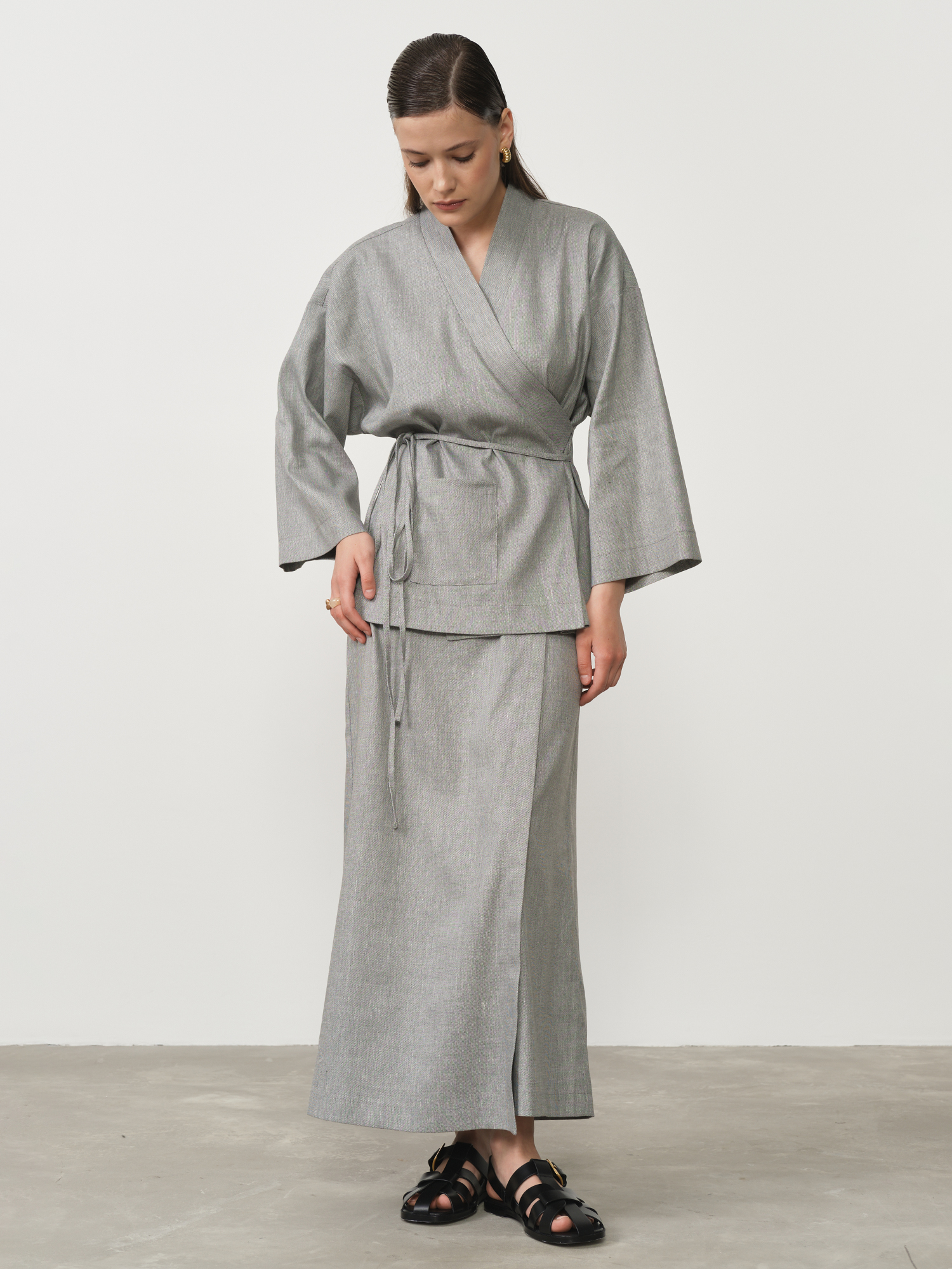 Юбка-брюки льняная 80600 светло-серая