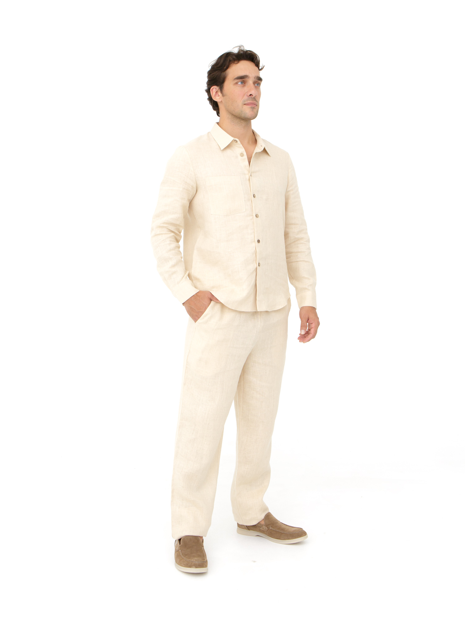 100% натуральный лен — экологичный и гипоаллергенный материал с высокой воздухопроницаемостью. Обеспечивает естественную терморегуляцию, позволяя коже дышать и не перегреваться. Отличается прочностью и долговечностью, со временем становится мягче и комфортнее в носке .